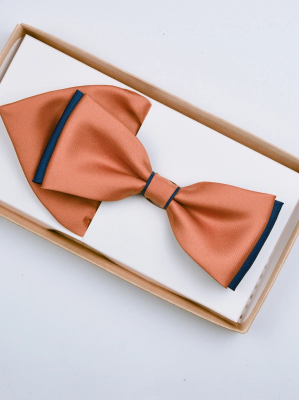 Granatowo-miodowa, pomarańczowa mucha męska jednolita gładka z poszetką