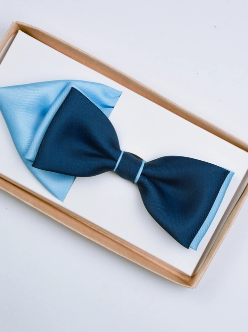 Biało-granatowa mucha męska z białą poszetką gładka jednolita