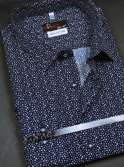 Koszula męska elegancka granatowa w biae wzory długi rękaw na guziki