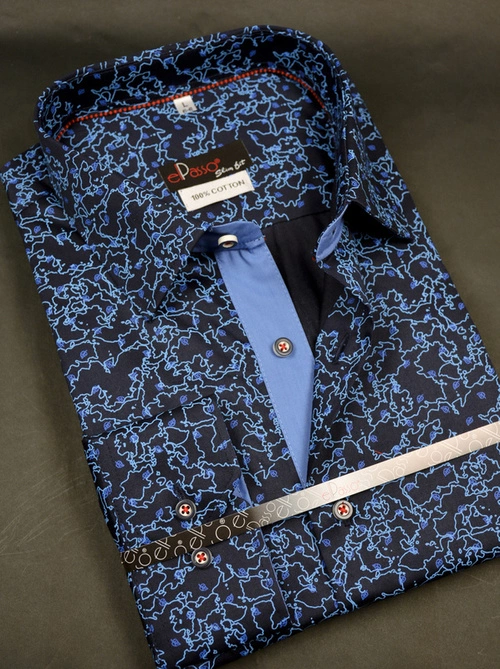 Koszula męska casual granatowa we wzory długi rękaw na guziki
