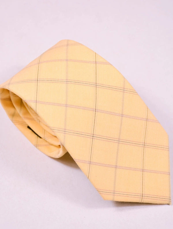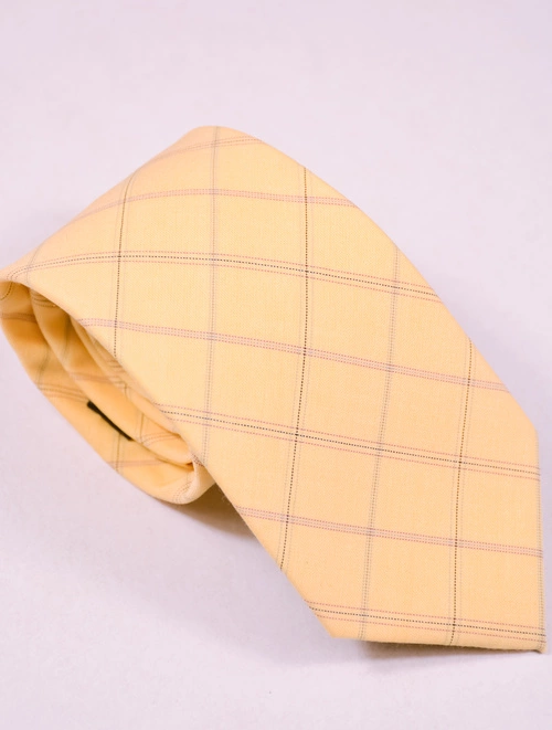 Krawat męski z grafiką w żółto kremowo-beżową kratę.