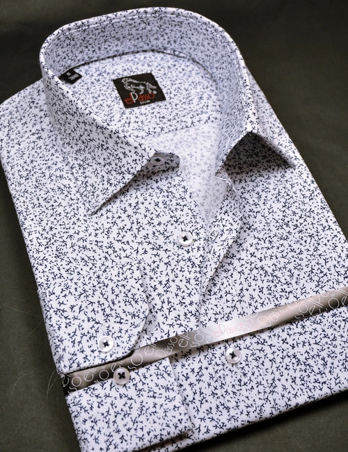 Koszula męska elegancka biała we wzory długi rękaw na guziki