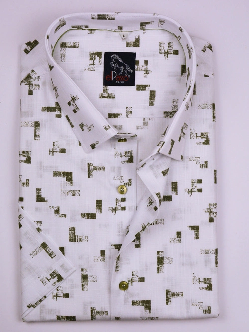 Koszula męska casual biała grafika wzory geometryczne długi rękaw na guziki elastan