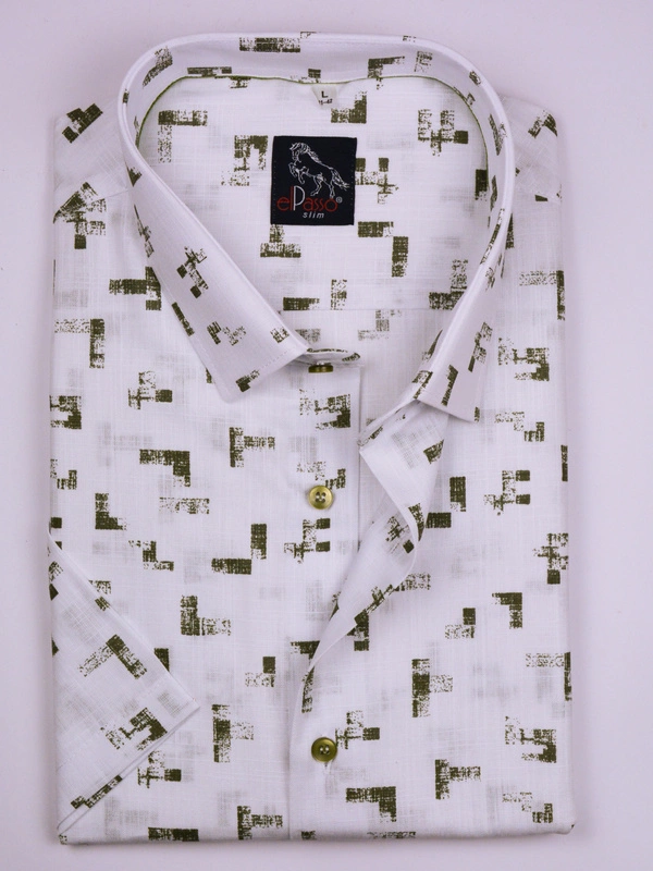 Koszula męska bawełniana, długi rękaw, biała w oliwkowy i granatowy wzór
