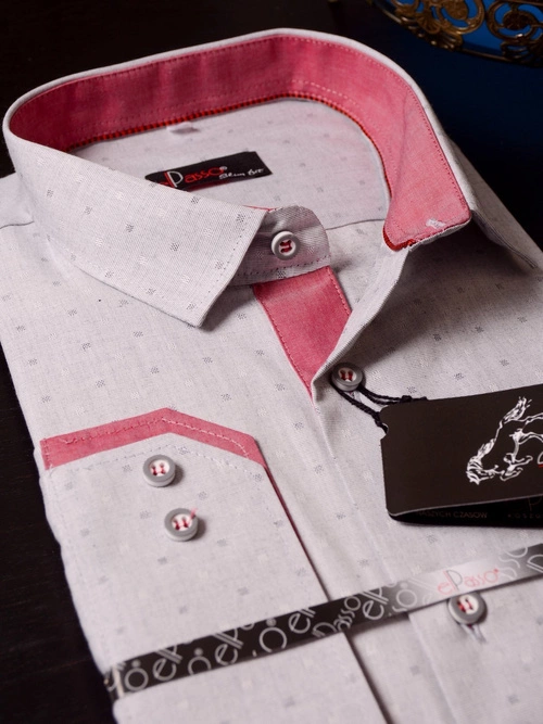 - Koszula z długim rękawem -skład 80% bawełna 20% poliester -modny,klasyczny,krótki,kołnierzyk -mankiet zaokrąglony,regulowany na dwa guziki -stójka wew. wykończona różowym kontrastem z dekoracyjnym obszyciem -krój slim (taliowana) unikatowy deisgn.