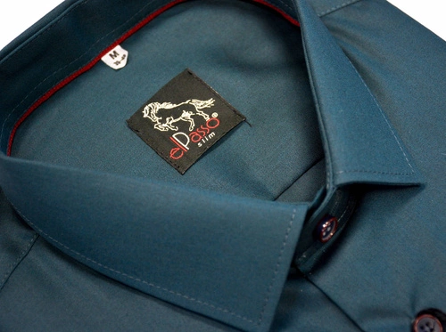 - Koszula z długim rękawem-skład 60% bawełna 40% poliester -modny, klasyczny, krótki, kołnierzyk - mankiet zaokrąglony, regulowany na dwa guziki-stójka wew. wykończona granatowym kontrastem z dekoracyjnym obszyciem - krój Slim (taliowana) lub Classic.