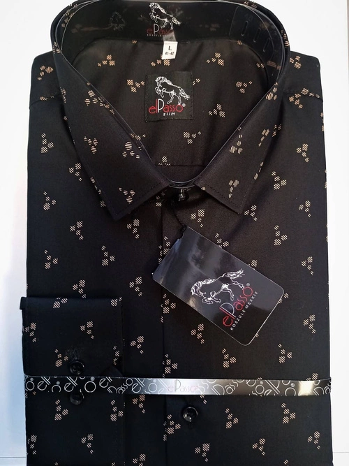 - Elegancka męska koszula z nadrukiem graficznym. Koszula z długim rękawem-modny, krótki, kołnierzyk-mankiet zaokrąglony, regulowany na dwa guziki -krój Slim (taliowany) unikatowy deisgn.