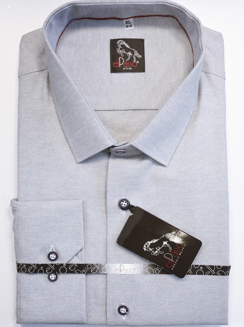 Koszula męska elegancka jednolita szara długi rękaw na guziki