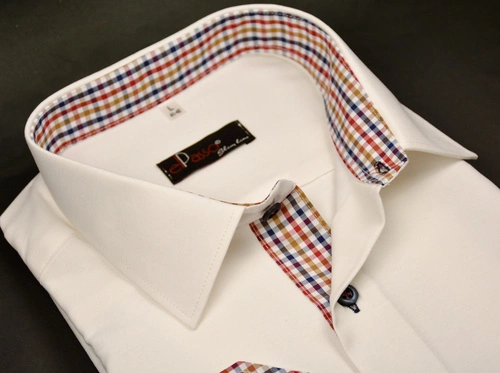 - Koszula z długim rękawem-skład 80% bawełna 20% poliester -modny, klasyczny, krótki, kołnierzyk - mankiet zaokrąglony, regulowany na dwa guziki-stójka wew. wykończona granatowym kontrastem z dekoracyjnym obszyciem - krój Classic.