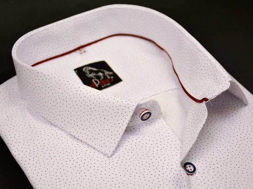 Koszula męska elegancka biała wzór w czarne kropki długi rękaw na guziki