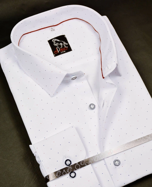 Koszula męska elegancka biała wizytowa we wzory długi rękaw na guziki