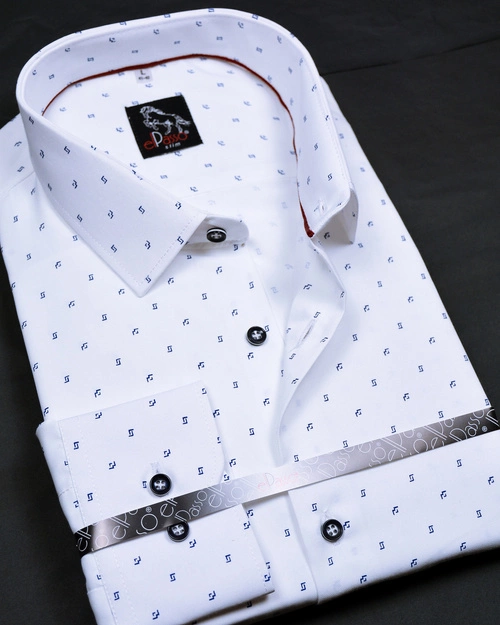 - Elegancka koszula z nadrukiem graficznym. Koszula z długim rękawem- modny krótki kołnierzyk-mankiet zaokrąglony- regulowany na dwa guziki -krój Slim (taliowany) lub Classic-unikatowy deisgn.