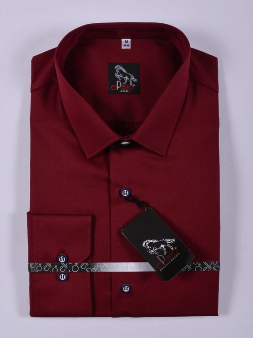 Koszula męska wizytowa bordowa gładka jednolity kolor długi rękaw