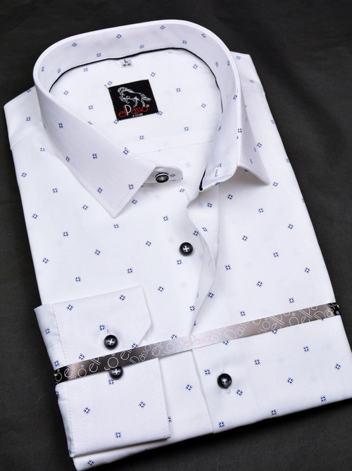 - Elegancka koszula z nadrukiem graficznym. Koszula z długim rękawem-skład 60% bawełna- 40% poliester- modny krótki kołnierzyk-mankiet zaokrąglony- regulowany na dwa guziki -krój Slim (taliowany) lub Classic-unikatowy deisgn.
