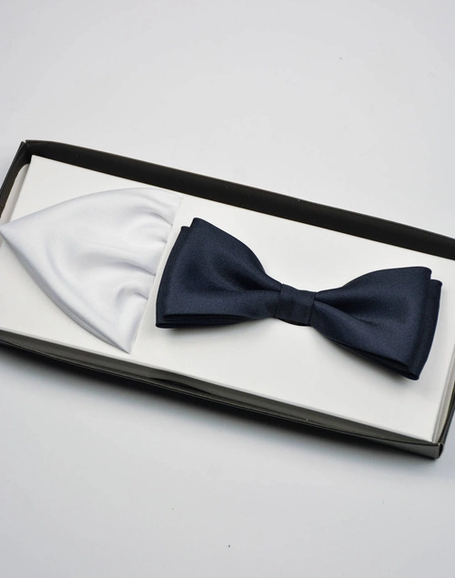 Granatowa mucha męska gładka jednolita z białą poszetką