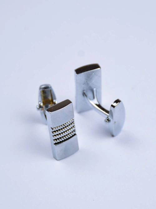 • Prostokątne spinki do mankietów w kolorze stalowo-srebrnym