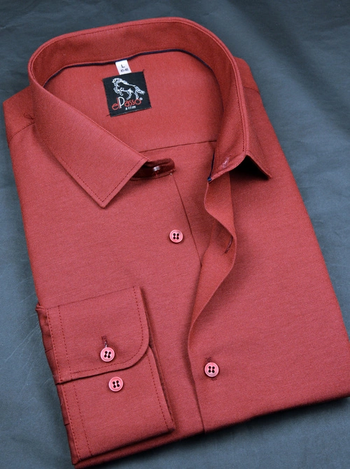 Koszula męska elegancka bordowa jednolita mikrowzór długi rękaw na guziki