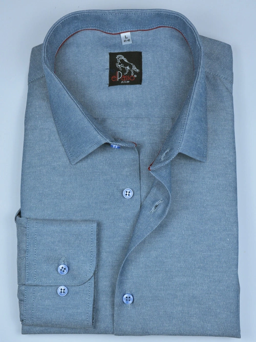 Koszula męska elegancka, niebieski melanż, długi rękaw na guziki