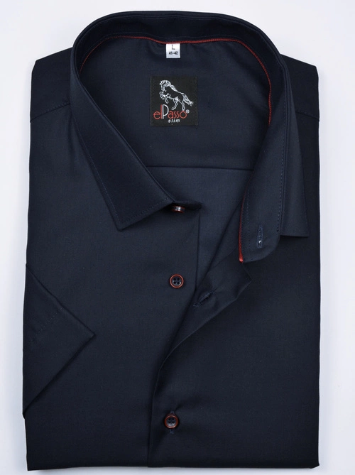 Koszula męska elegancka wizytowa granatowa gładka jednolity kolor krótki rękaw