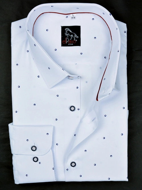 Elegancka wizytowa koszula męska, długi rękaw, biała w granatowo czerwony wzór