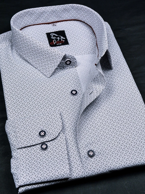 Elegancka wizytowa koszula męska, długi rękaw, biała z grafiką