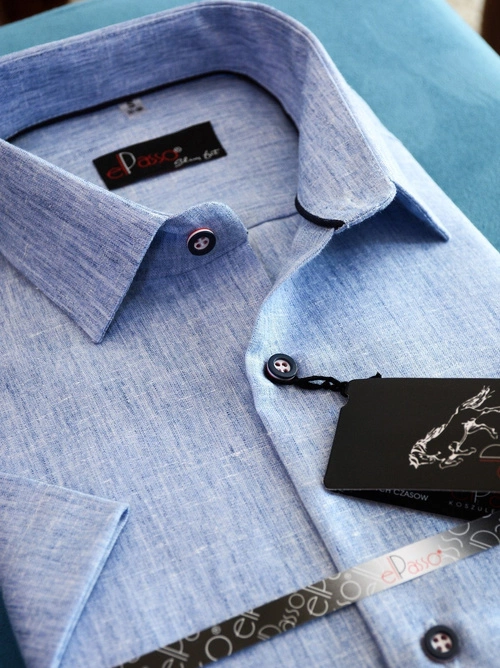 Elegancka koszula męska wizytowa krótki rękaw w niebieskim kolorze.