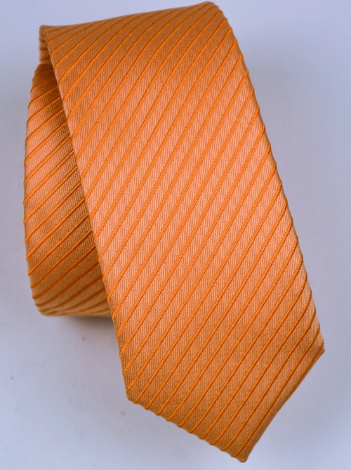 - Krawat męski w kolorze pomarańczowym, w skośne pomarańczowe paski lekko połyskująca tkanina.