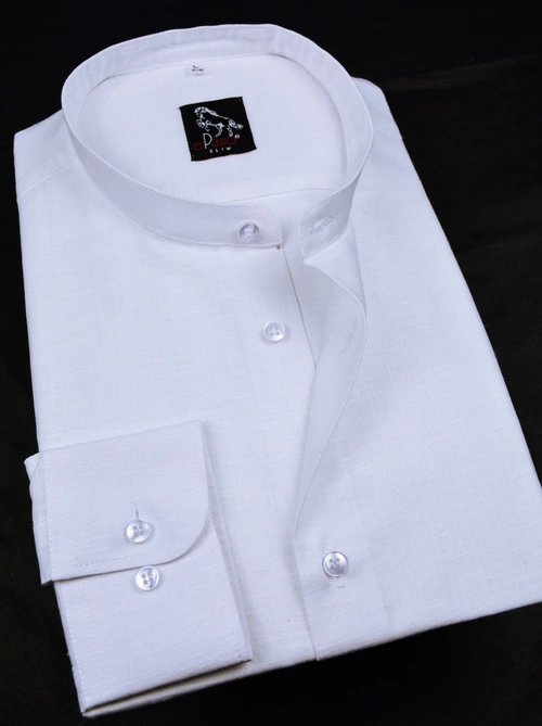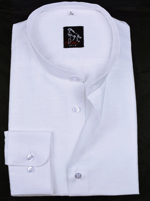 Strukturalna biała koszula męska ze stójką długi rękaw