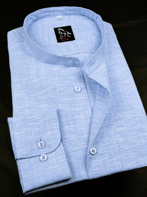 Koszula męska elegancka strukturalna w kolorze niebieskim ze stójką na długi rękaw