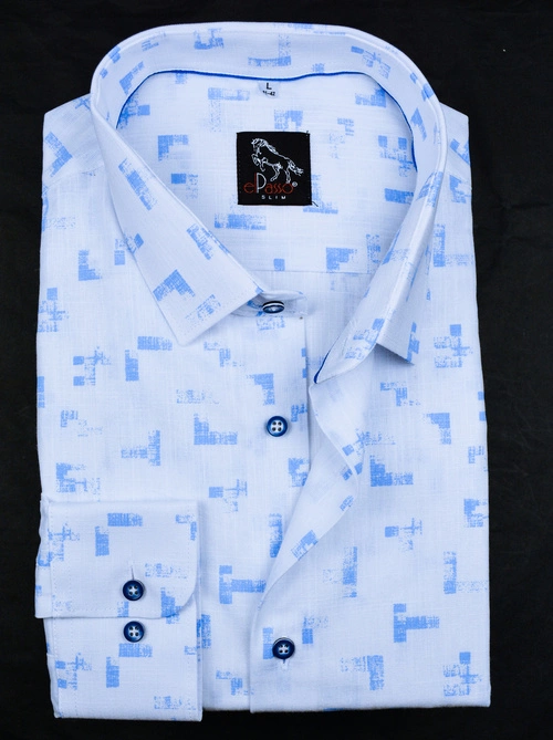 - Elegancka koszula z nadrukiem graficznym. Koszula z długim rękawem-skład 100% bawełna-modny, krótki, kołnierzyk-mankiet zaokrąglony, regulowany na dwa guziki -krój Slim (taliowany) lub Classic-unikatowy deisgn.