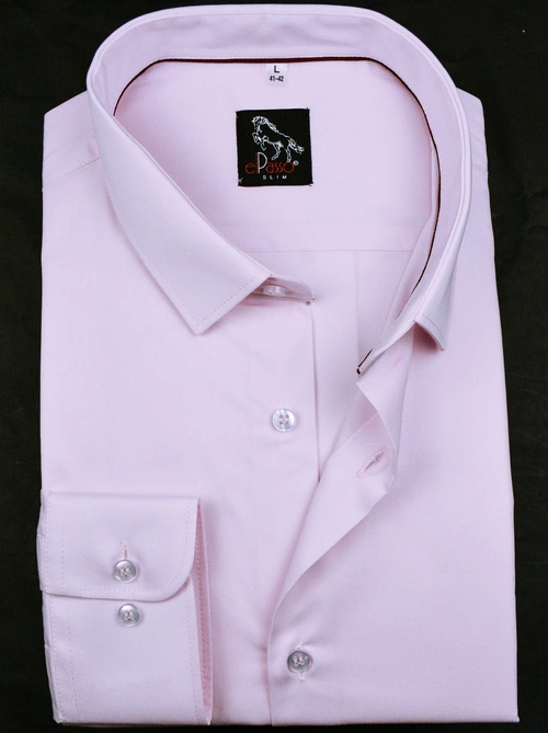 Koszula męska wizytowa jasno różowa, gładka, jednolity kolor długi rękaw