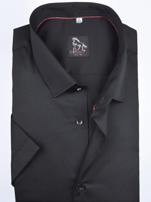 Koszula męska wizytowa czarna gładka jednolity kolor krótki rękaw