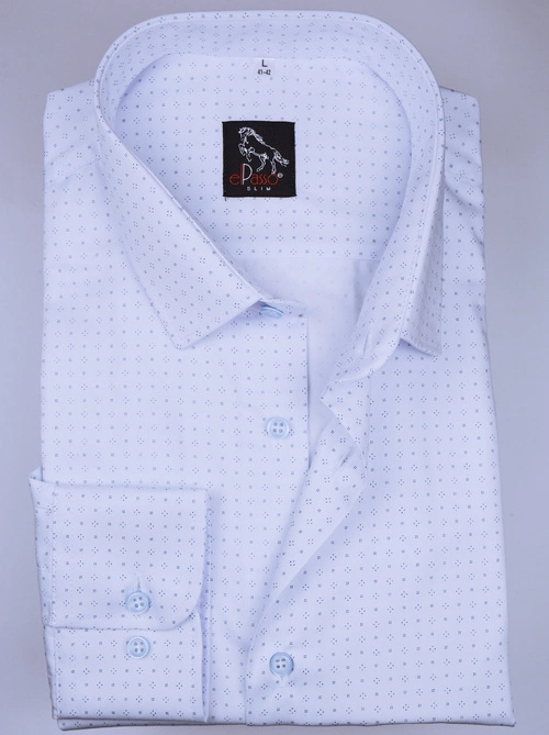 - Elegancka koszula biała z długim rękawem ,grafitowa grafika, mankiet regulowany zapinany na dwa guziki, modny krótki kołnierzyk -krój Slim (taliowany) lub Classic unikatowy deisgn.