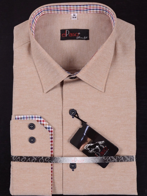 Koszula męska elegancka beżowa długi rękaw na guziki