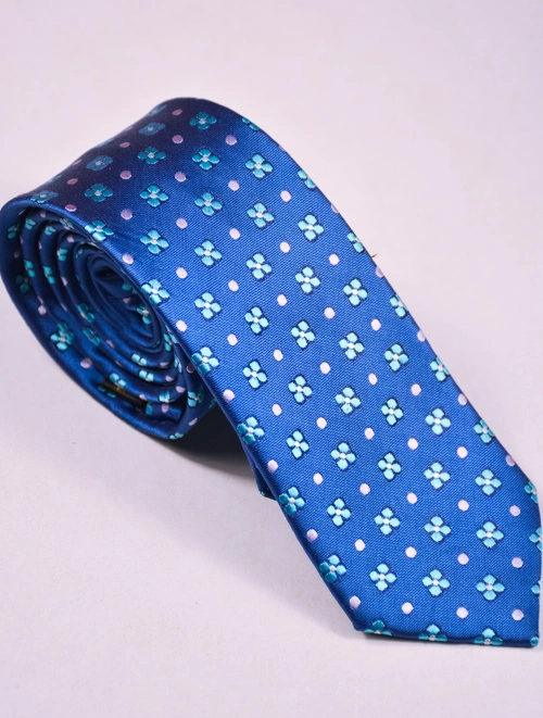 - Krawat z grafiką wykonany z lekko połyskującej tkaniny.