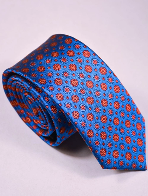 - Krawat z grafiką wykonany z lekko połyskującej tkaniny.