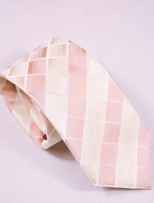 Krawat męski z grafiką w kremowo-beżową kratę.
