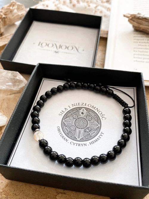 obsydianu, cytrynu i hematytu, wspiera równowagę psychiczną, dodaje pewności siebie i chroni przed