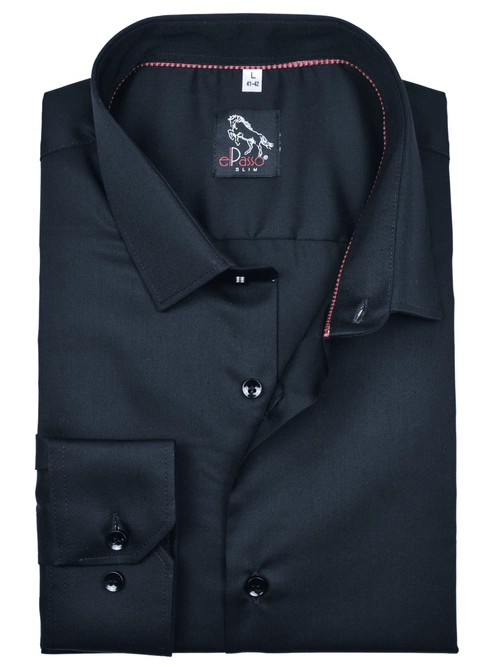 Elegancka, klasyczna koszula męska wizytowa marki elPasso w eleganckim ponadczasowym czarnym kolorze ,który łączy w sobie