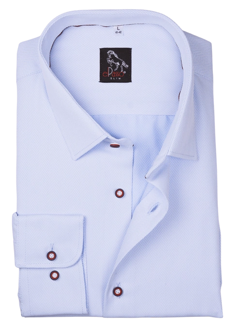 - Elegancka koszula z długim rękawem, wykonana z wysokiej jakości materiału tkany w jodełkę który zapewnia lepsze dopasowanie do sylwetki i swobodę ruchów . Modny kołnierzyk dodaje charakteru, a mankiet z regulacją na dwa guziki zapewni komfort i styl