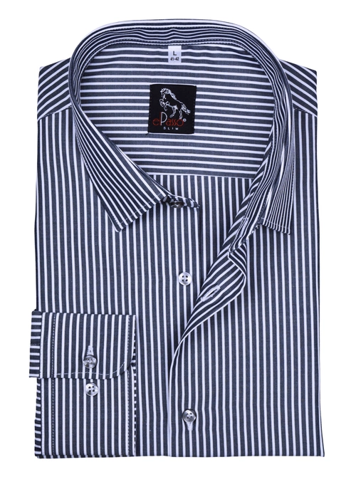 Elegancka wizytowa koszula męska, długi rękaw, czarna paski